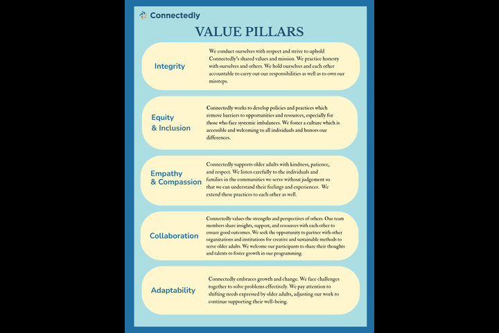 Connectedly advocates for a world in which people of all races, ages, cultures, sexual orientations, gender identities, and abilities are treated fairly with dignity and respect. We work to achieve diversity, equity, and inclusion across the life span.